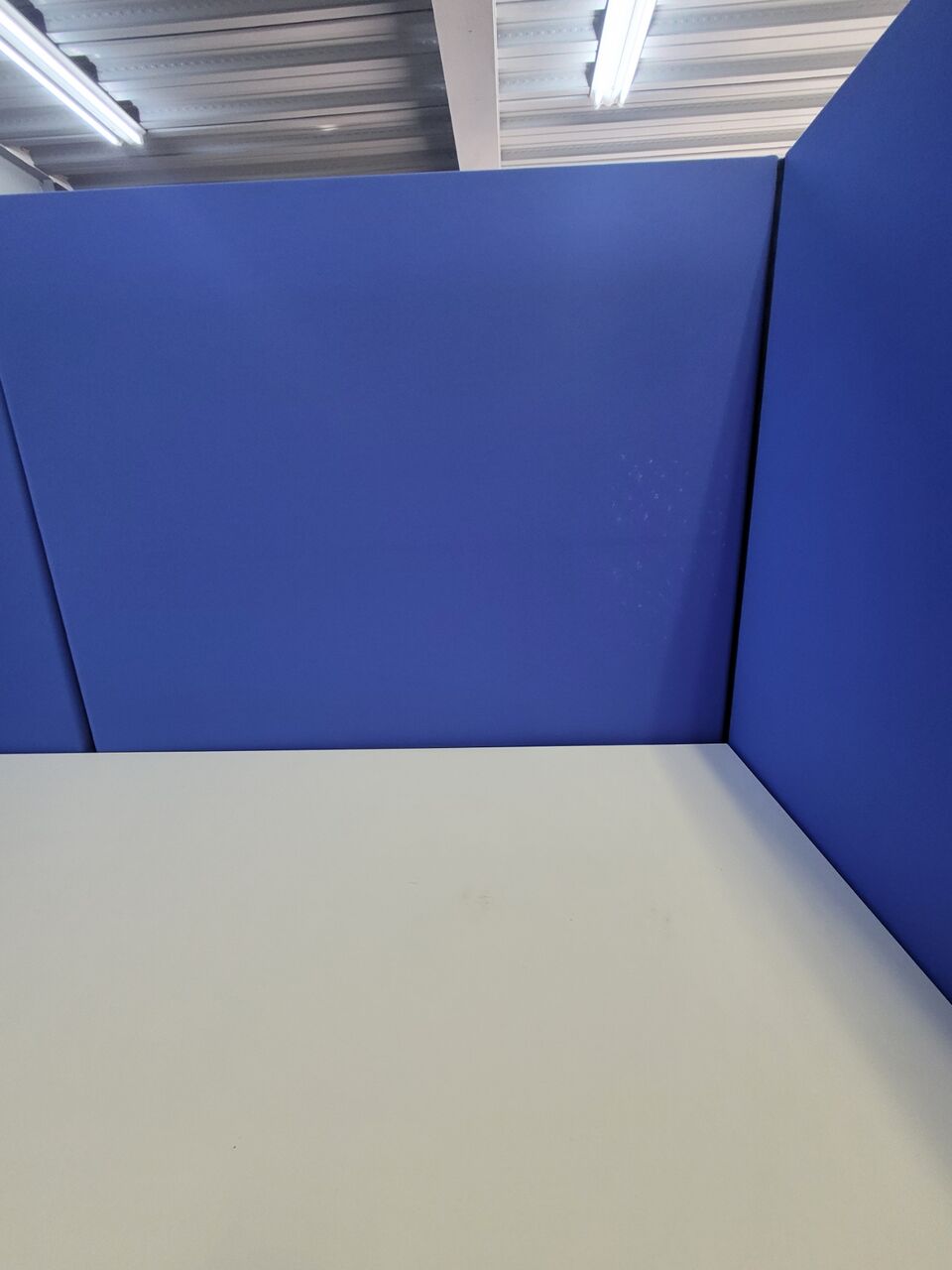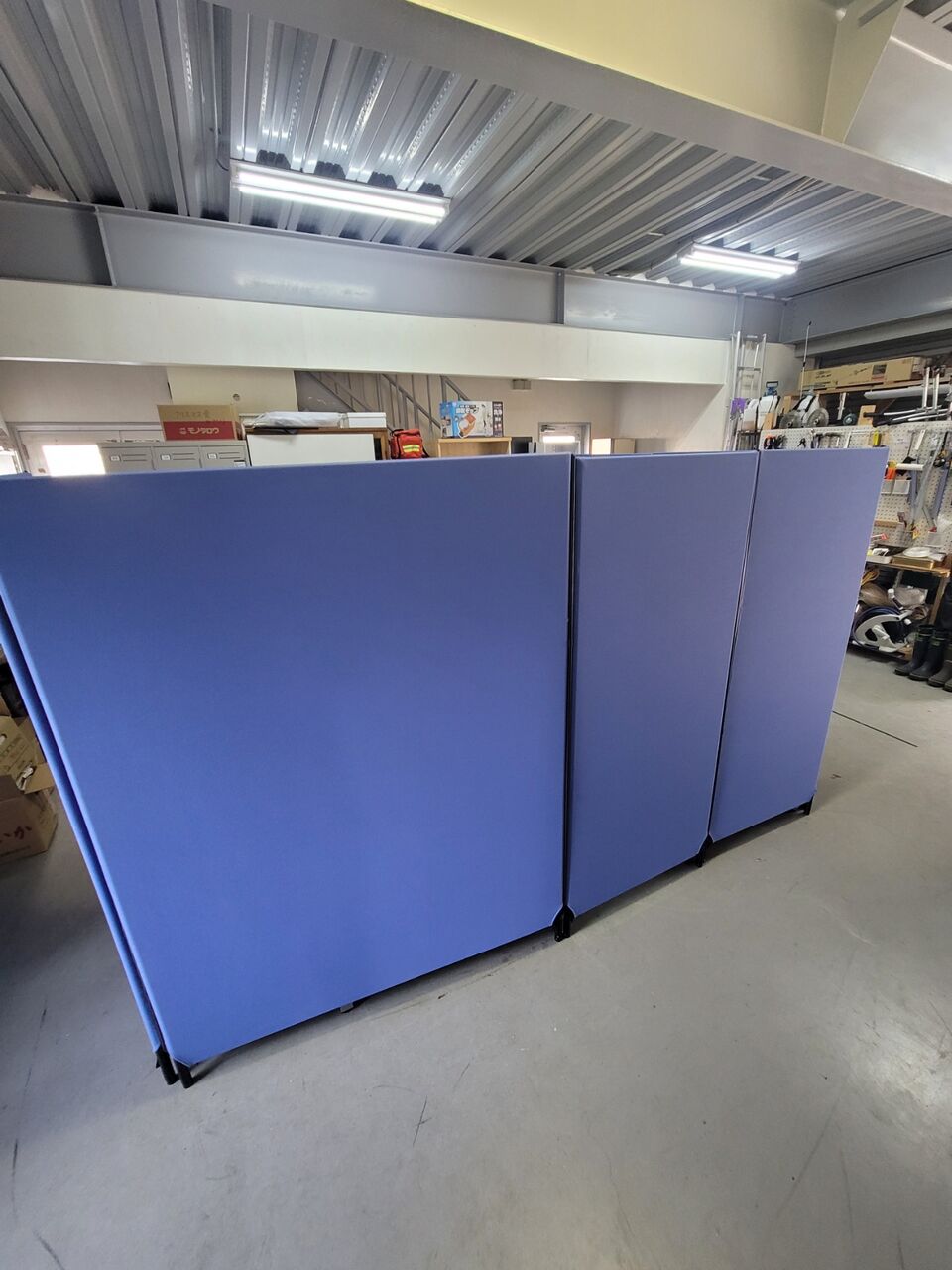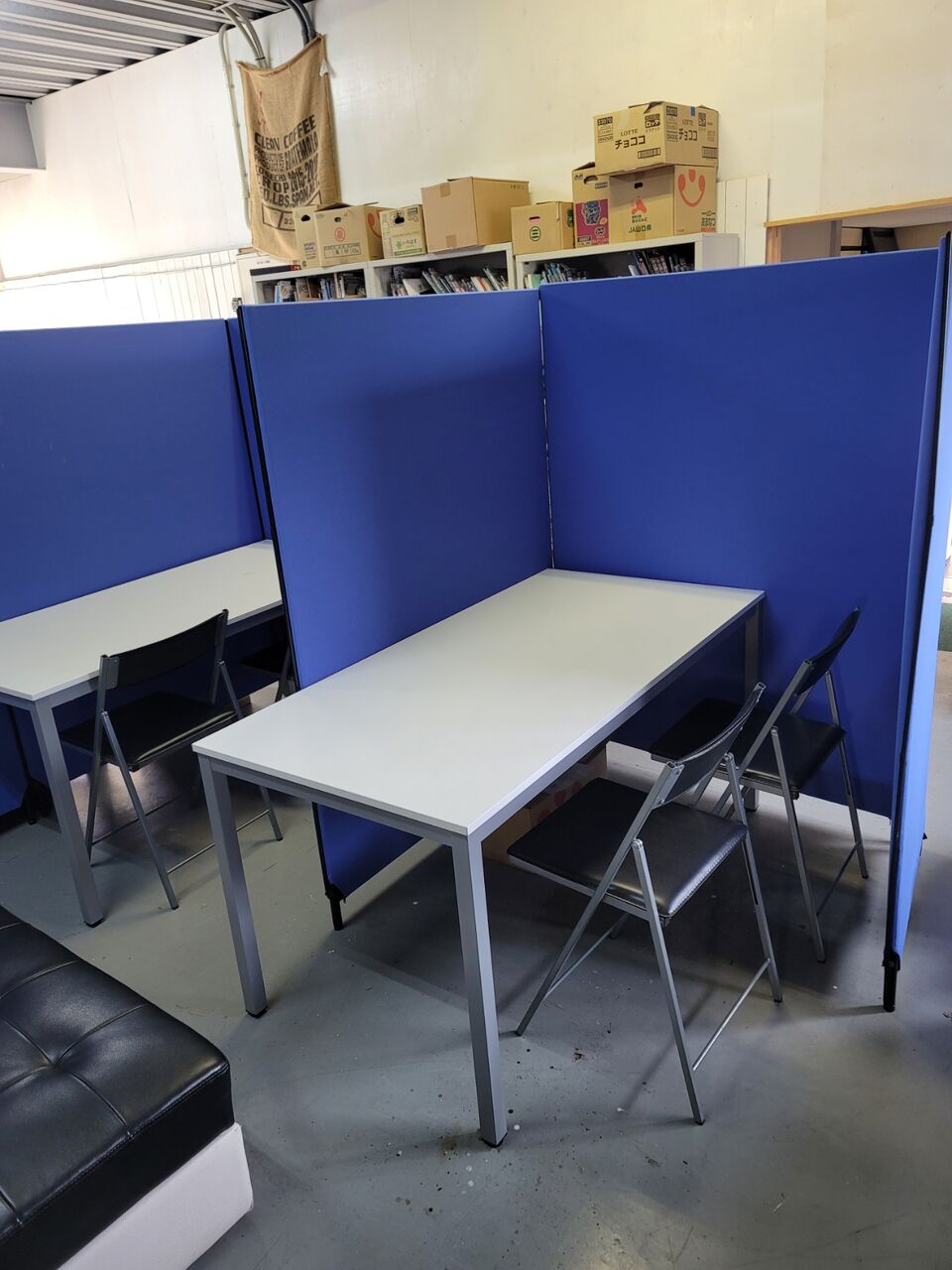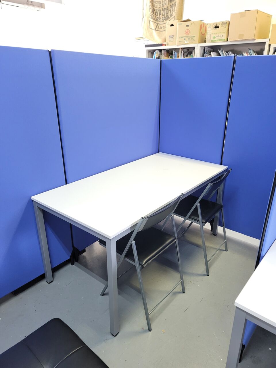 ◆布パーテーションで、リラックスゾーンを作りました。色はブルーです。