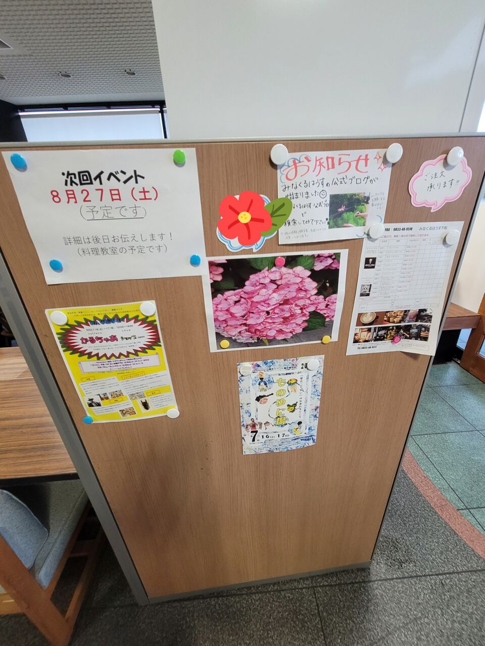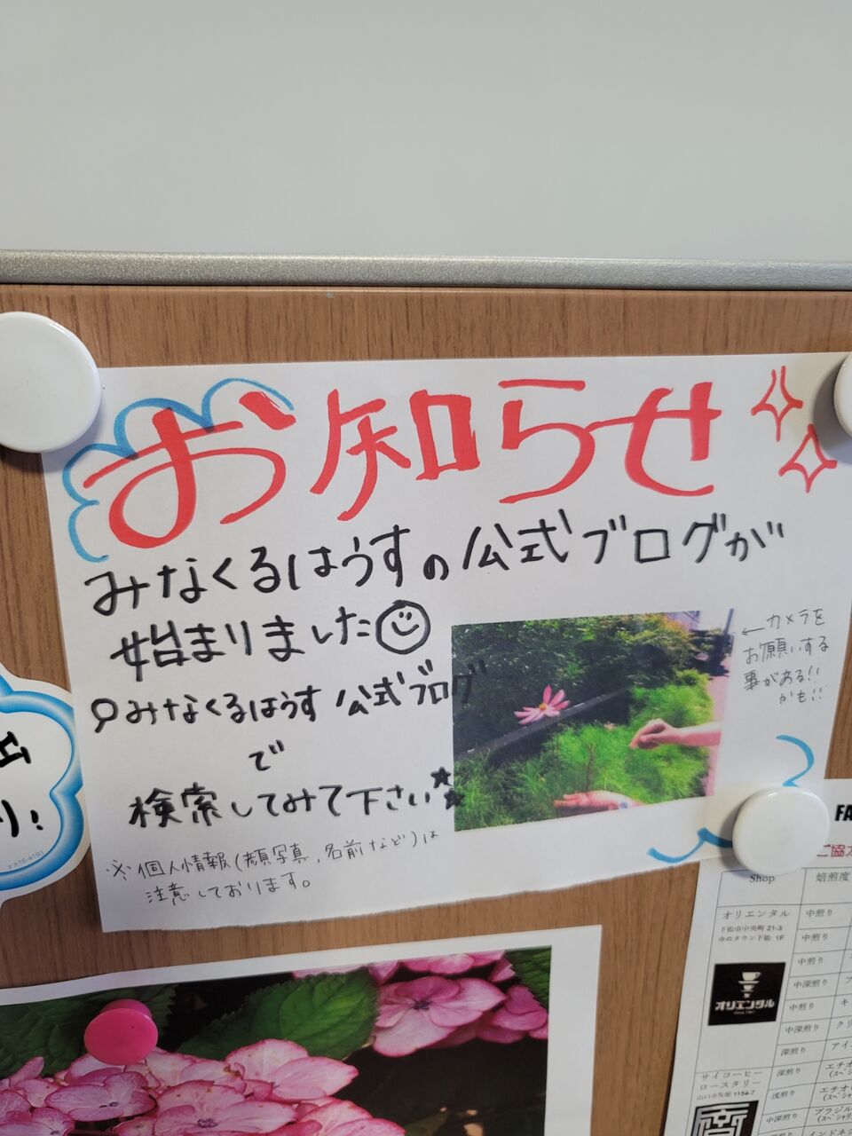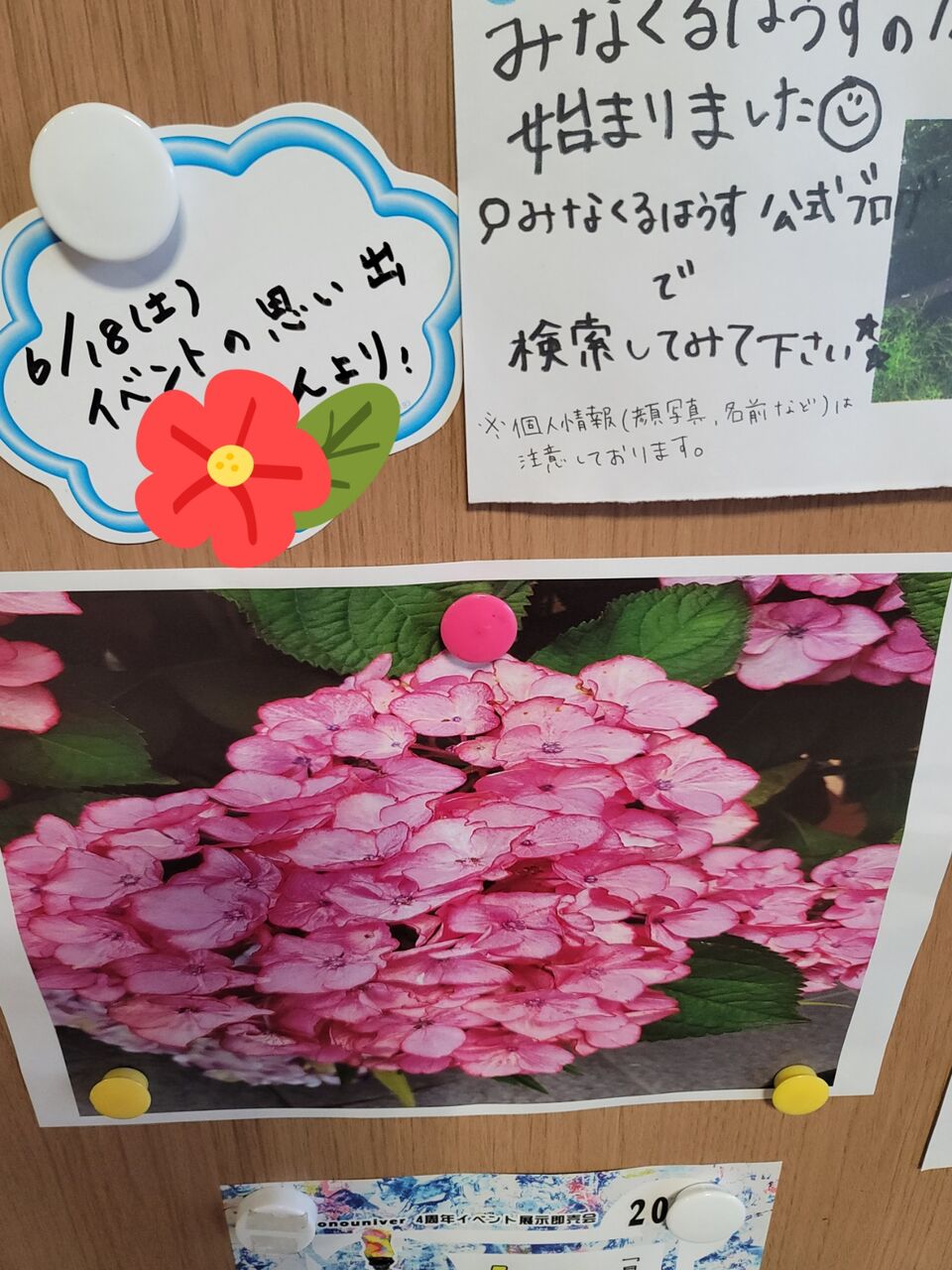 2022年07月23日 ◎発信する機会を⸜( ◍´꒳`◍ )⸝ ◆お知らせボードに“ お知らせ”。情報を受け取って、整理して、発信(๑•̀ㅂ•́)و✧みなくるはうす下松の玄関に、お知らせボードがあります。イベントや、伝達事項を張り出して、自分で情報収集する練習です。投げかけへの返答や、アンケートについて、自分でスタッフに声をかけます。ちょっとハードルが高い方は、文章でやりとりします。受け身なだけではなく、意思を発信する機会を作っていきたいです(๑•̀ㅂ•́)و✧ タグ :#みなくるはうす下松 「みなくるはうす下松」カテゴリの最新記事 < 前の記事次の記事 >