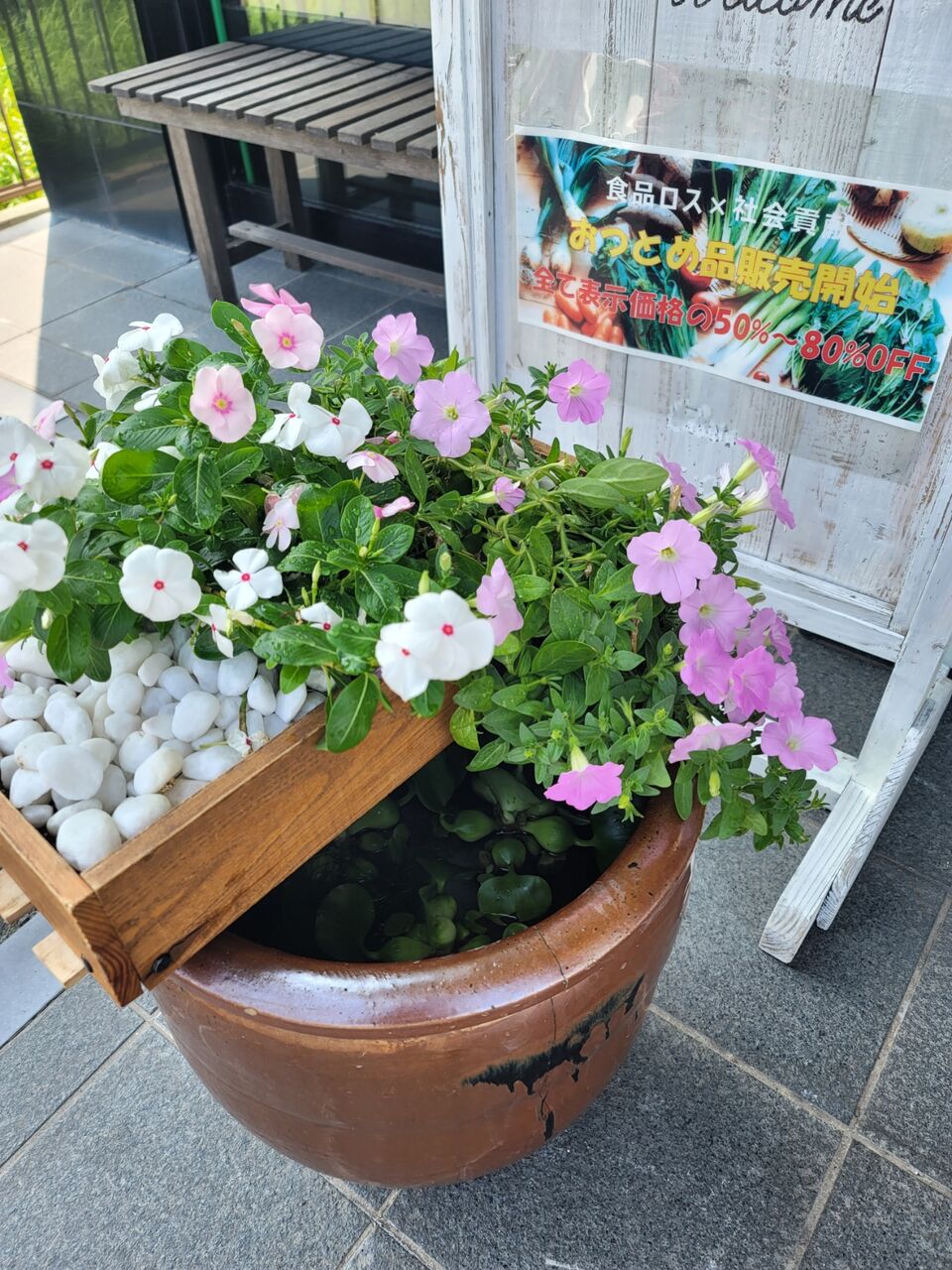水を浄化してくれる“赤玉 ”の上に白色の庭石を敷き詰めました。