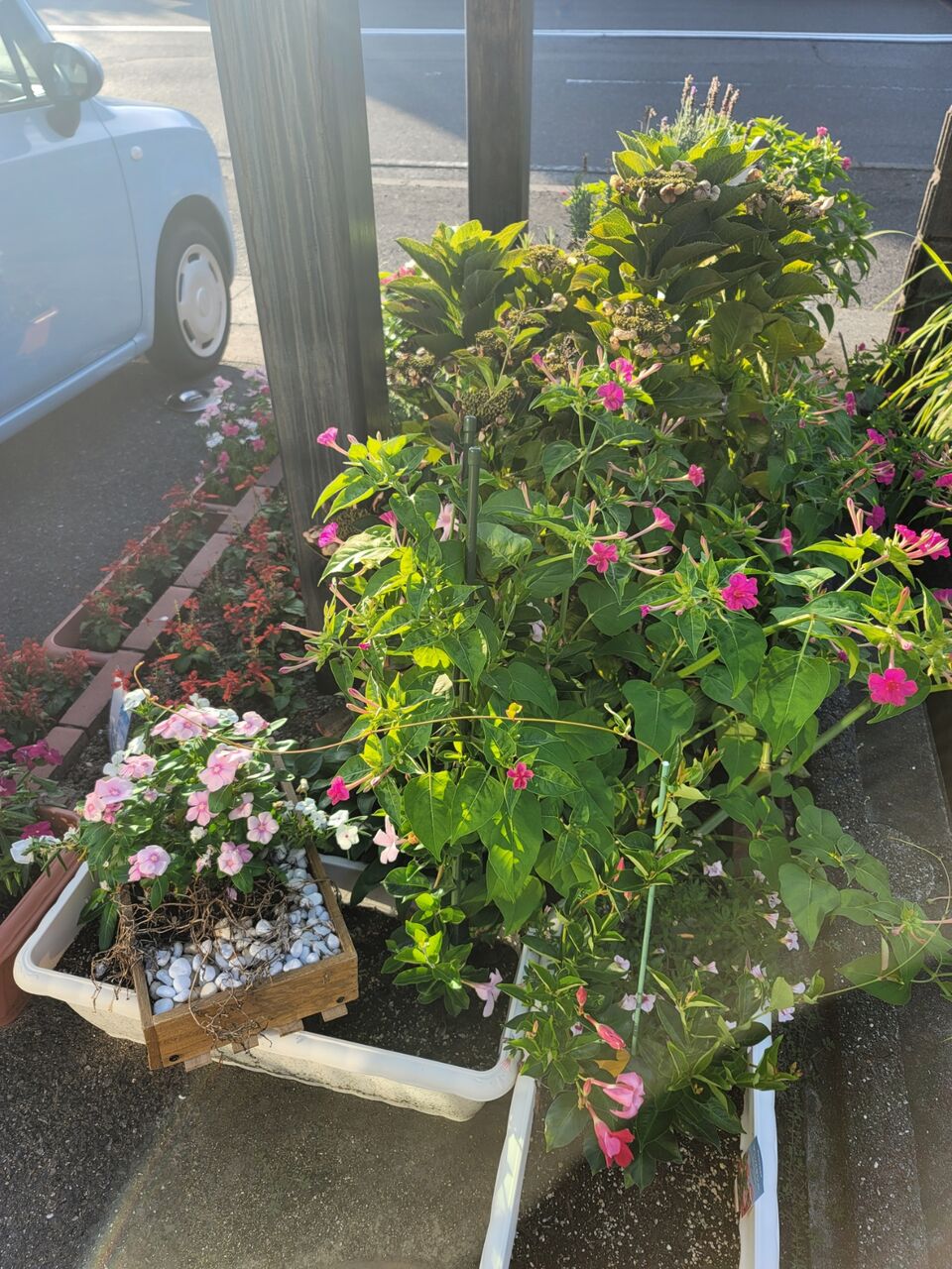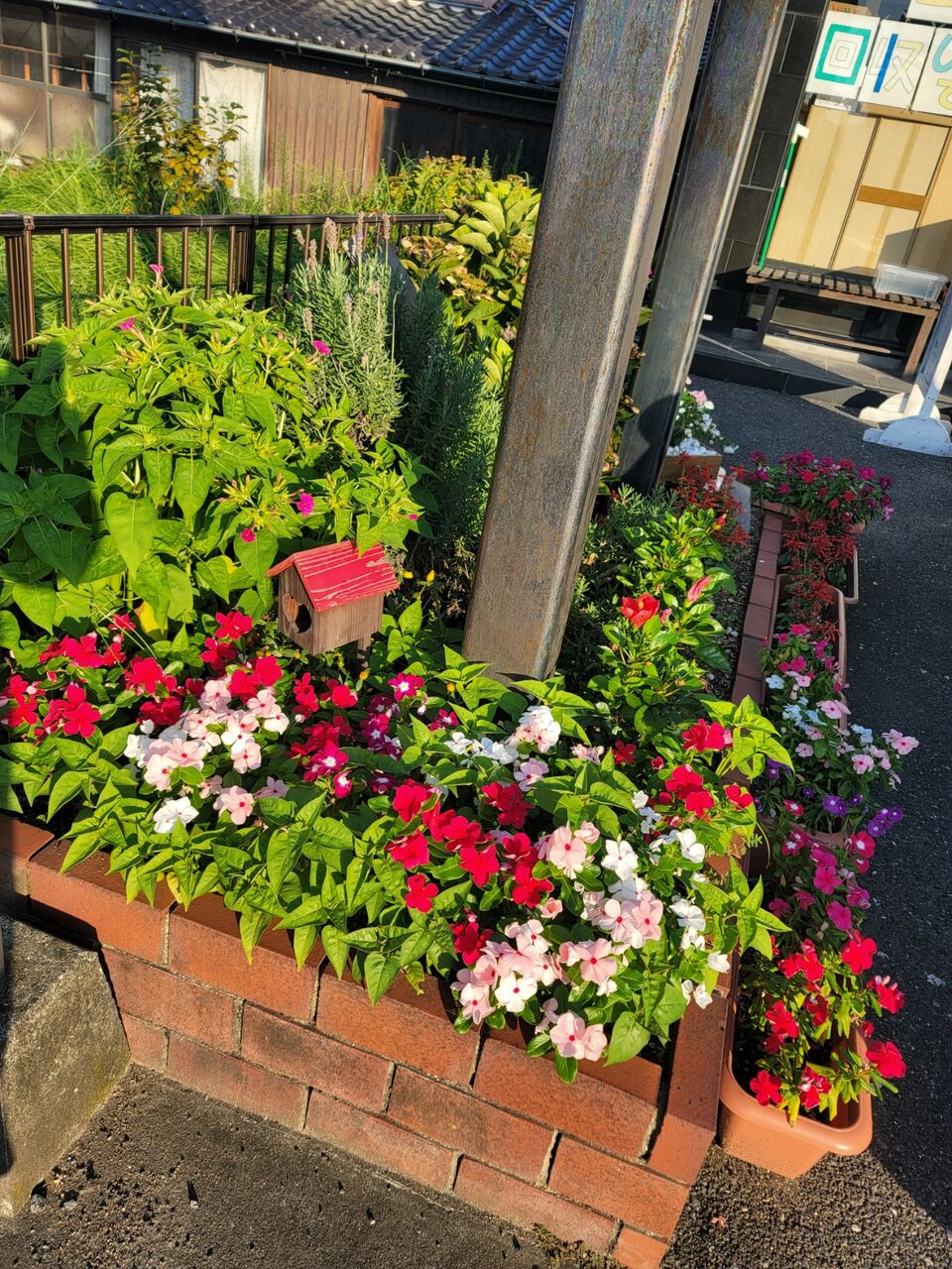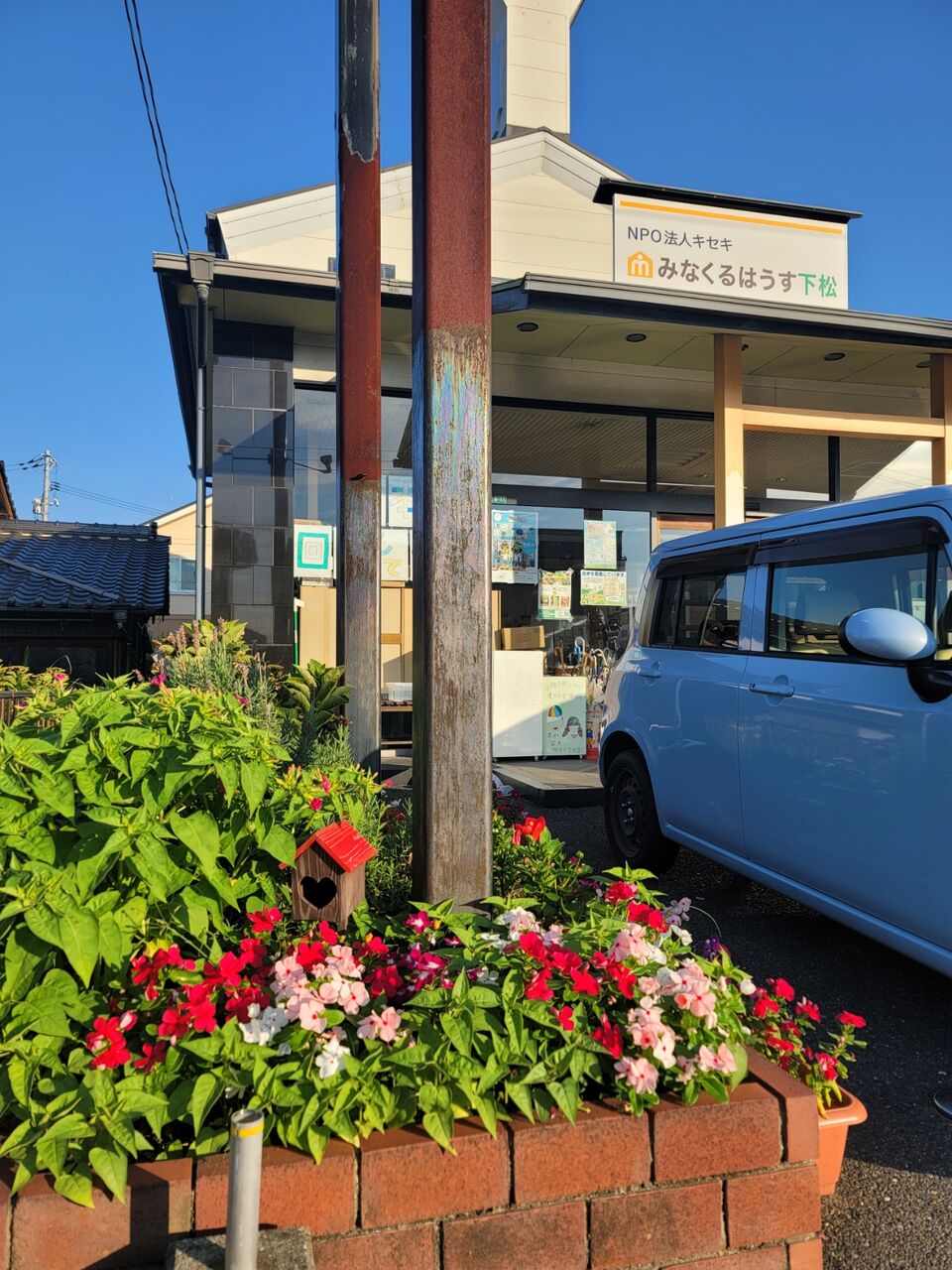 自立訓練(生活)のご利用者の方達が、水やりや草抜きのお世話をして下さっており、入口を彩ってます。