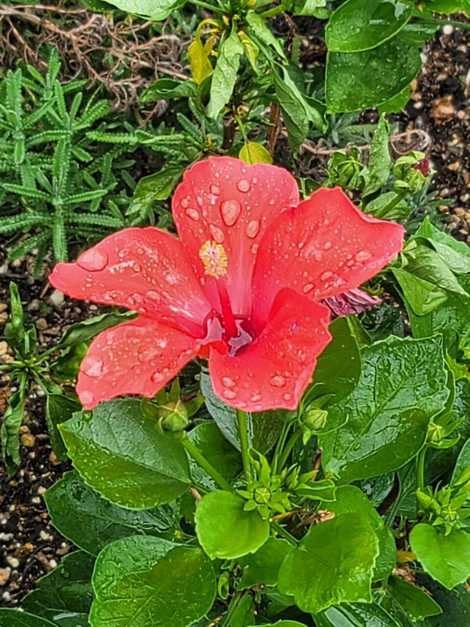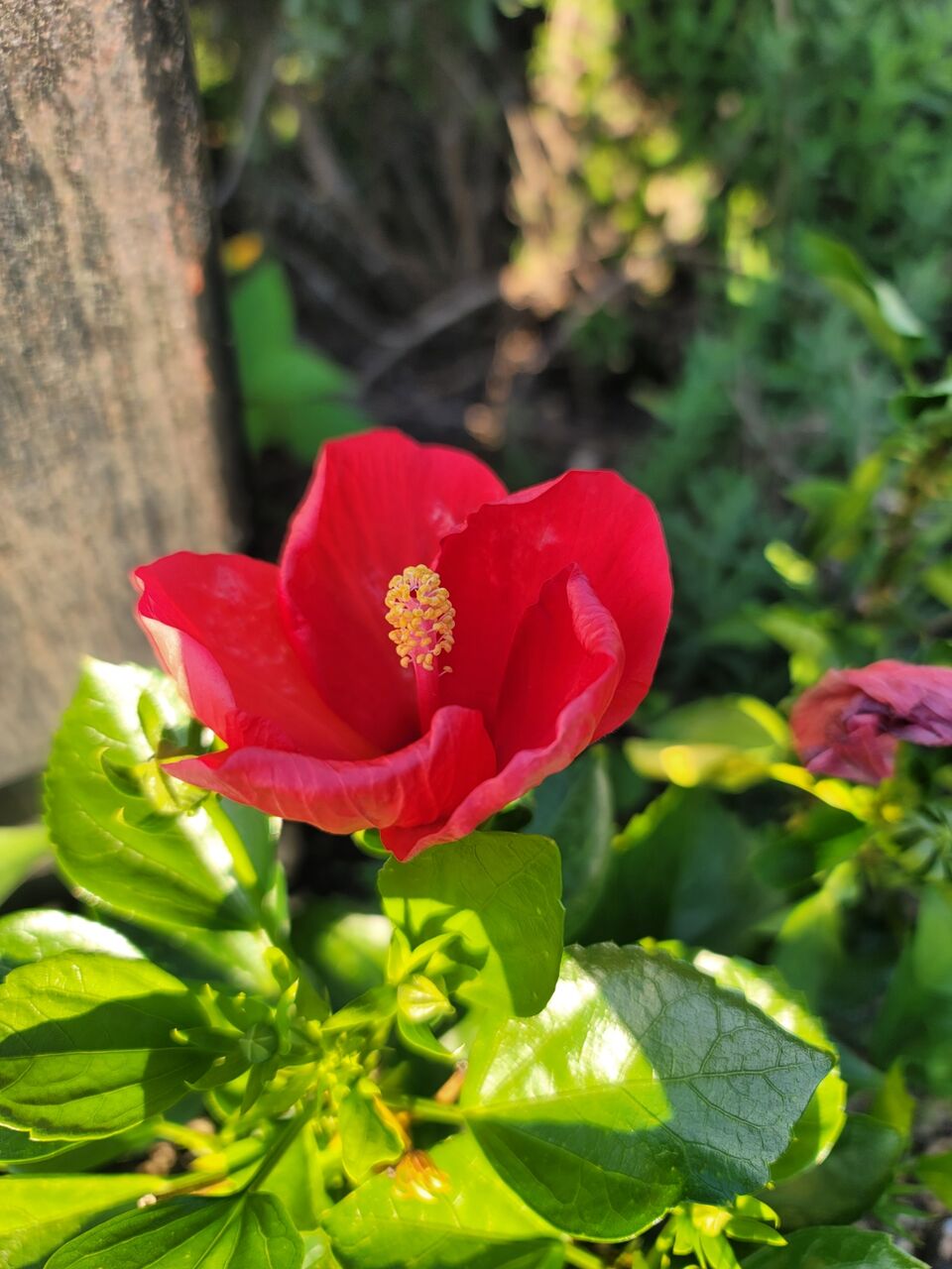 今朝、ついに🌺ハイビスカス🌺が咲きました。こちらも山一青果さんから頂いた、「おつとめ(引き上げ)」花の苗です。