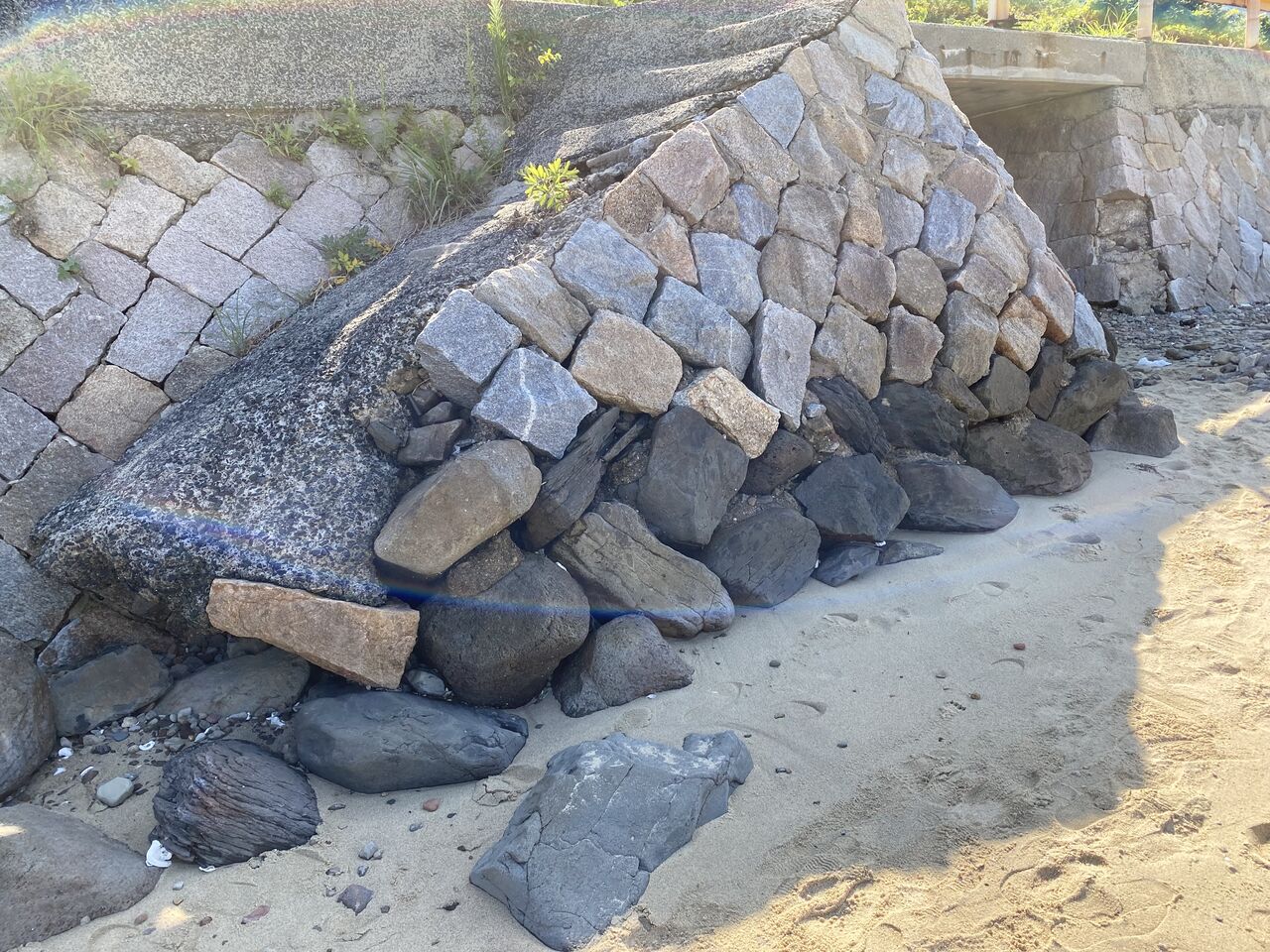 この時は満潮の大潮だったので下の砂地ではなく上からつりをしました。※何も収穫なし