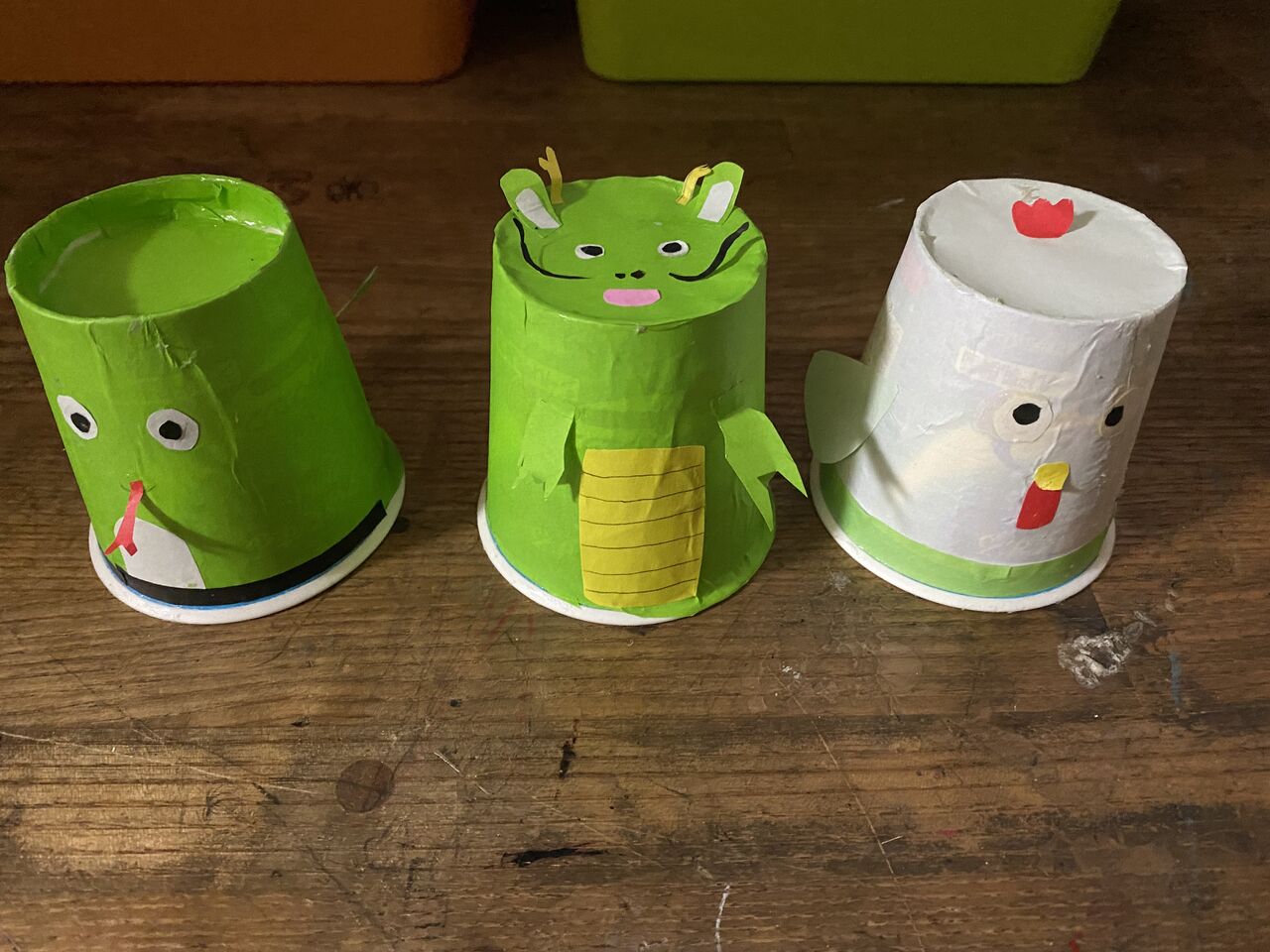 ヨーグルトのカップに折り紙を貼って何気なく動物を作ってみました。私としては試作品としてとりあえず作ってみたのですが… それが貼り方や角度の問題で折り紙の所々にシワが入りまして残念です。カップなどはカーブしていたりして紙や折り紙を貼る時は難しいかもです…。