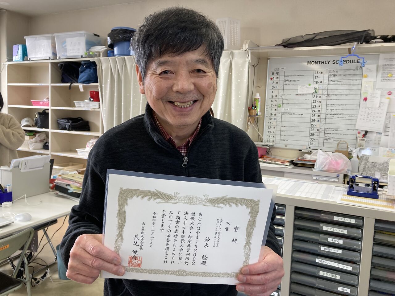 2022年12月22日 賞状が届きました!(みなくるはうす柳井) 08月17日に行われた「はじめての短歌講座」12月に賞状が届きました!ひとりひとり職員より手渡し良い笑顔です! カテゴリなしの他の記事 < 前の記事次の記事 >