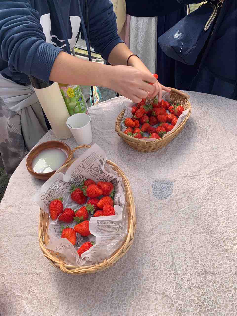 ハウス内にはいちごと練乳も用意していただいており、ハウス内のいちごを食べる方と用意されていたテーブルでいちごを食べている方と、みなさんそれぞれ楽しまれていました
