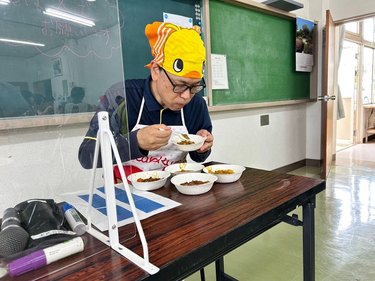 隠し味に使う調味料があり、それぞれのチームでいつもとちょっと違ったカレーをつくってもらいました。