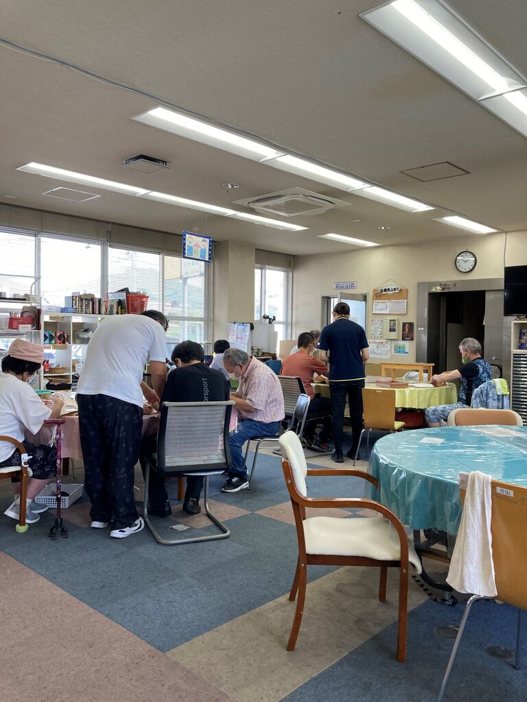利用者さんには台風の時に備えるものや気を付けることを説明していました。