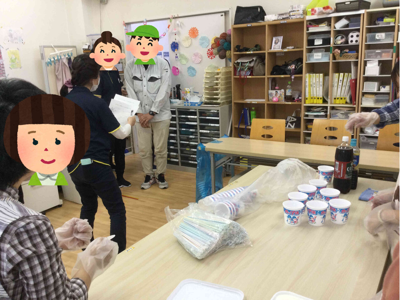利用者さんと職員さんで協力して買い物・会場の飾りなどを行いました。
