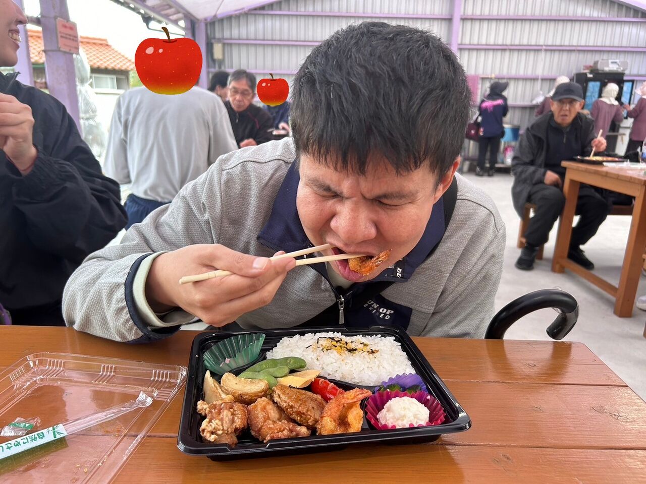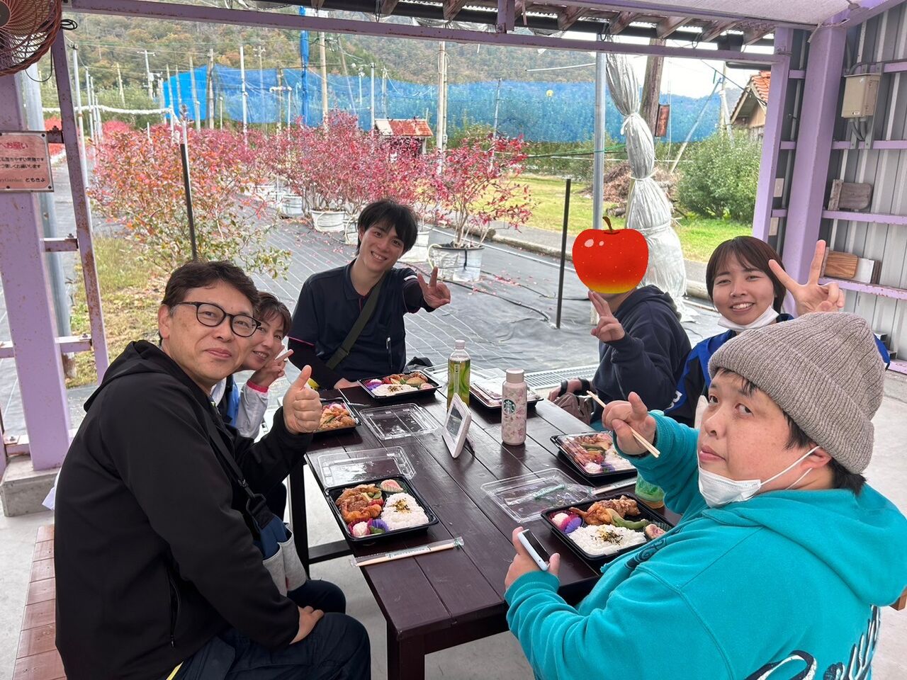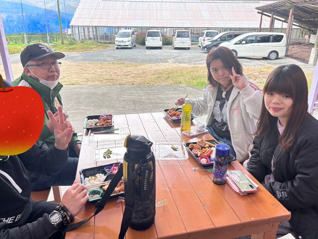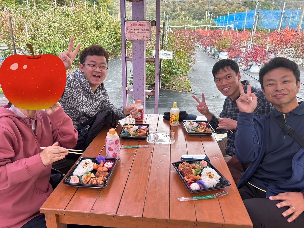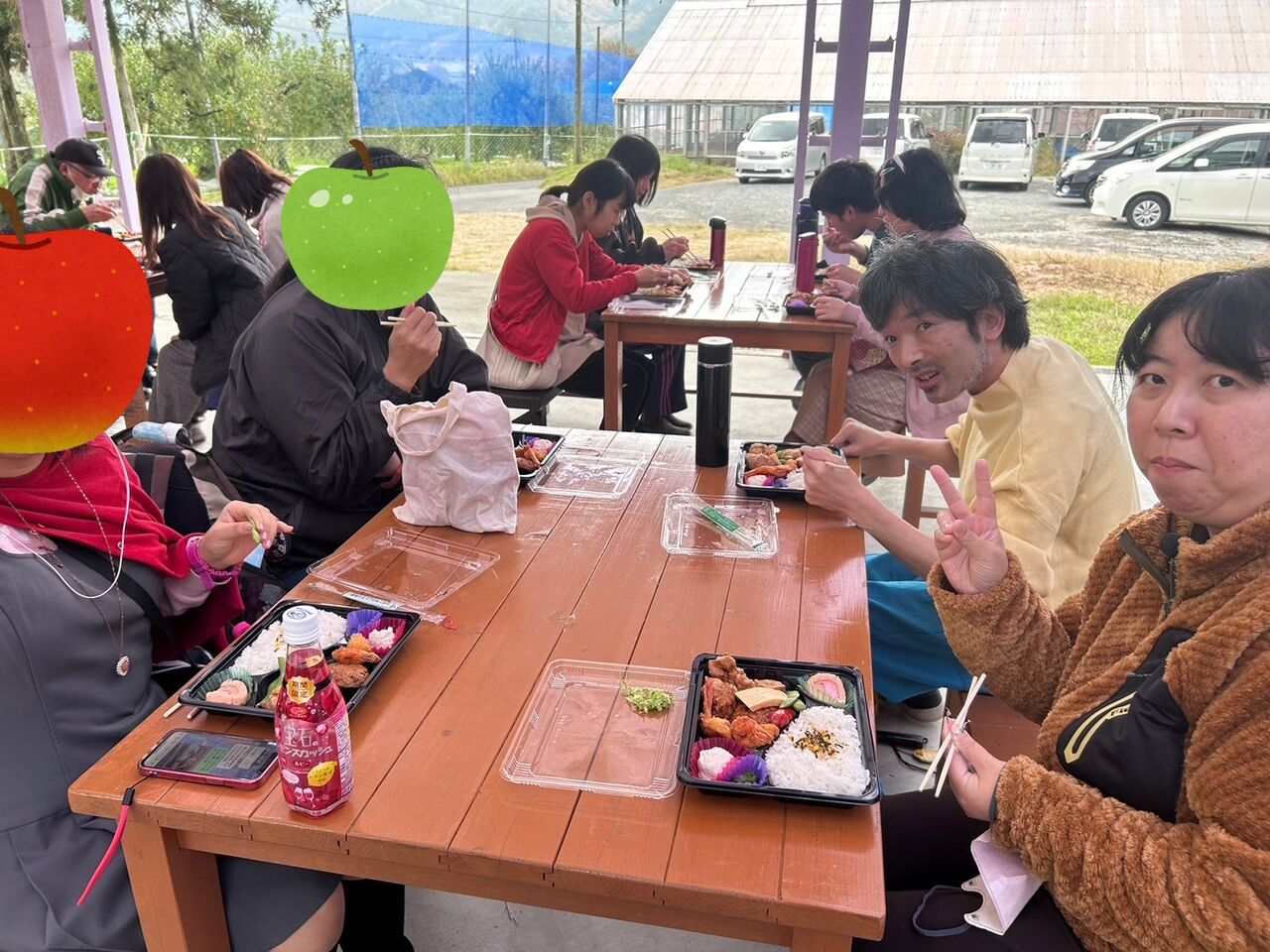 りんご園に到着して、まずはお弁当🍱!