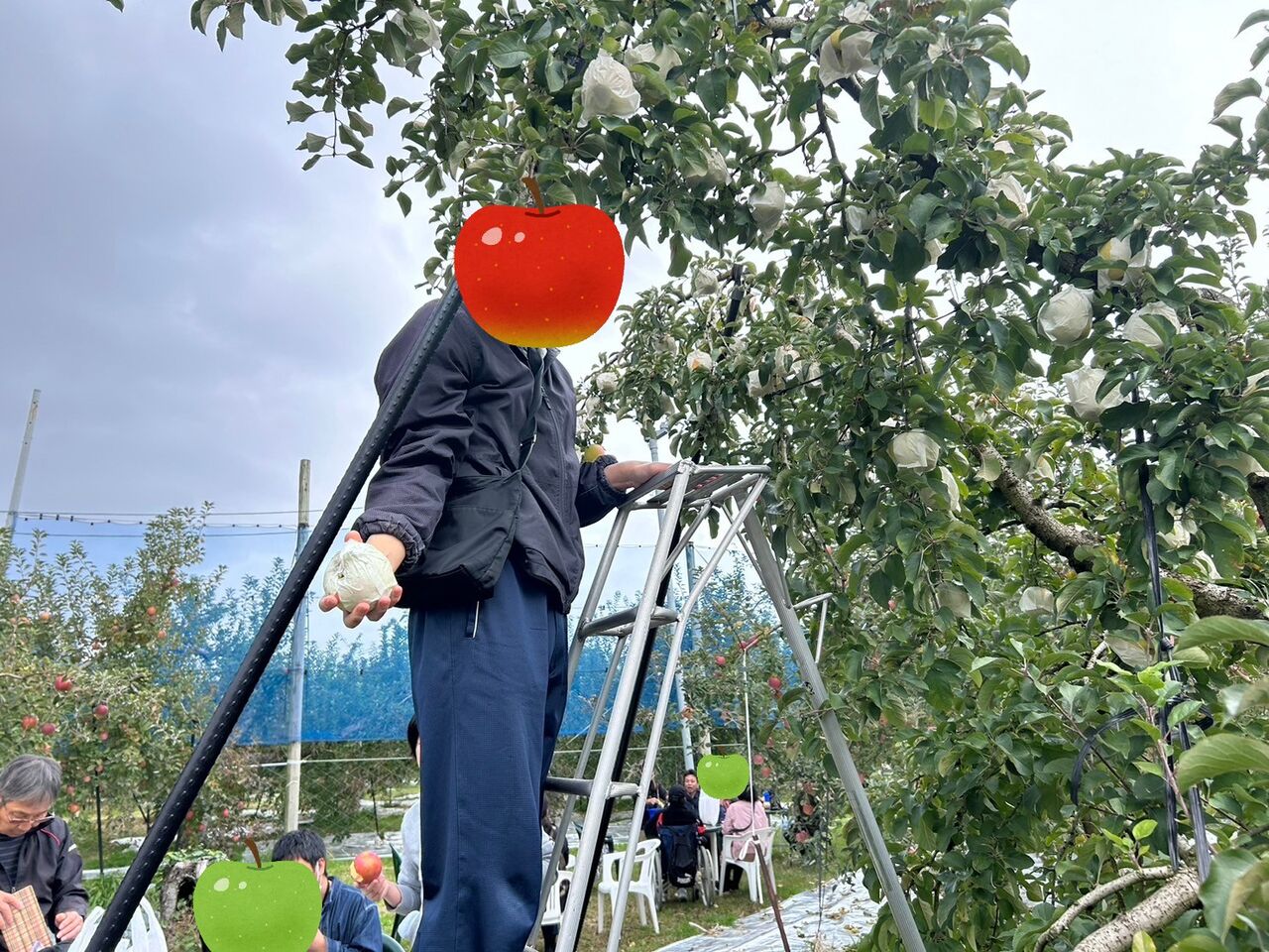 掲載しているどこかの写真に理事長が一生懸命りんごを採っている姿が写っています、探してみてくださいね🤩