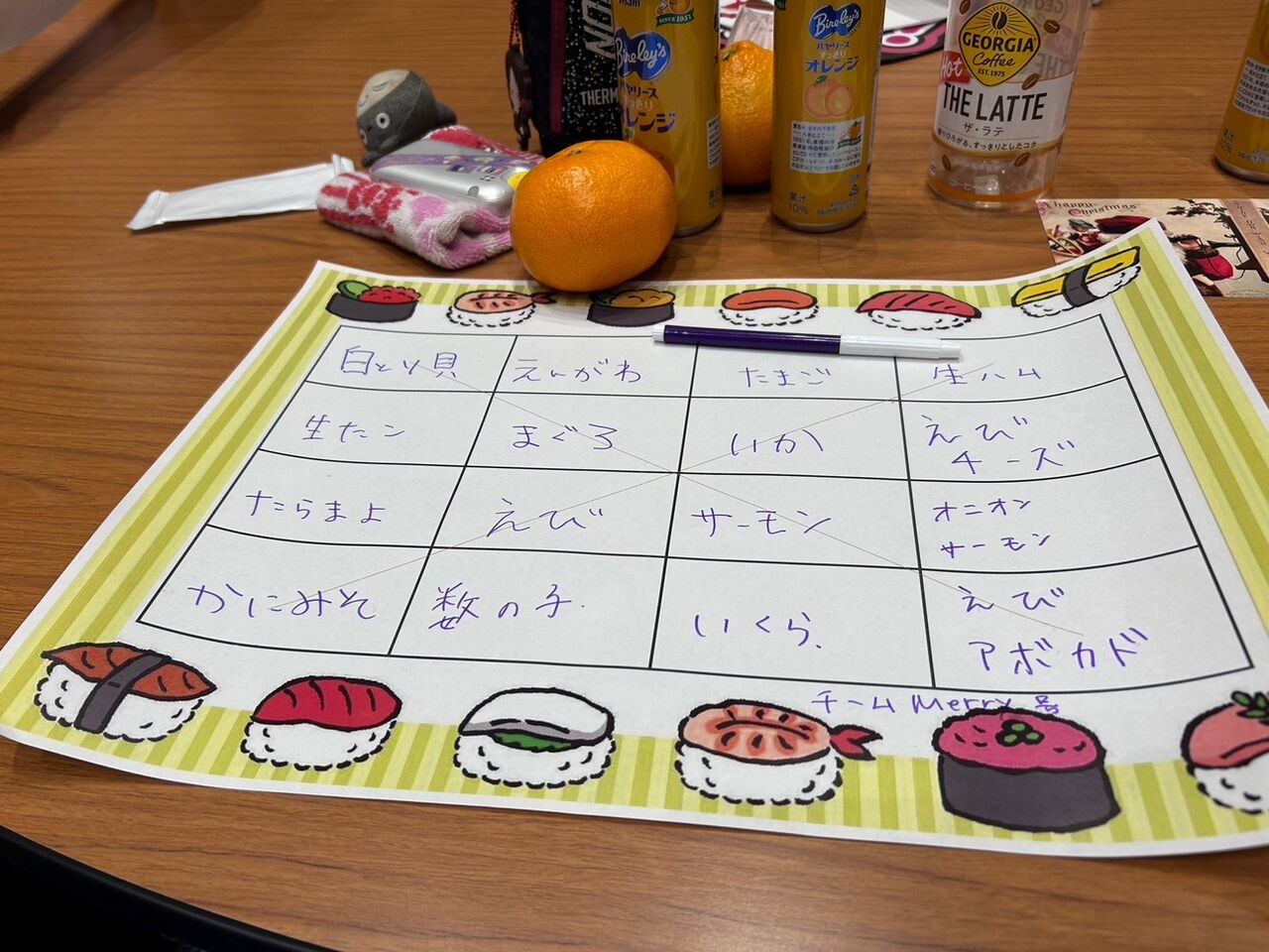 ビンゴになったらビンゴ!ではなく、スシロー!!といっていだだくルールになっています🍣